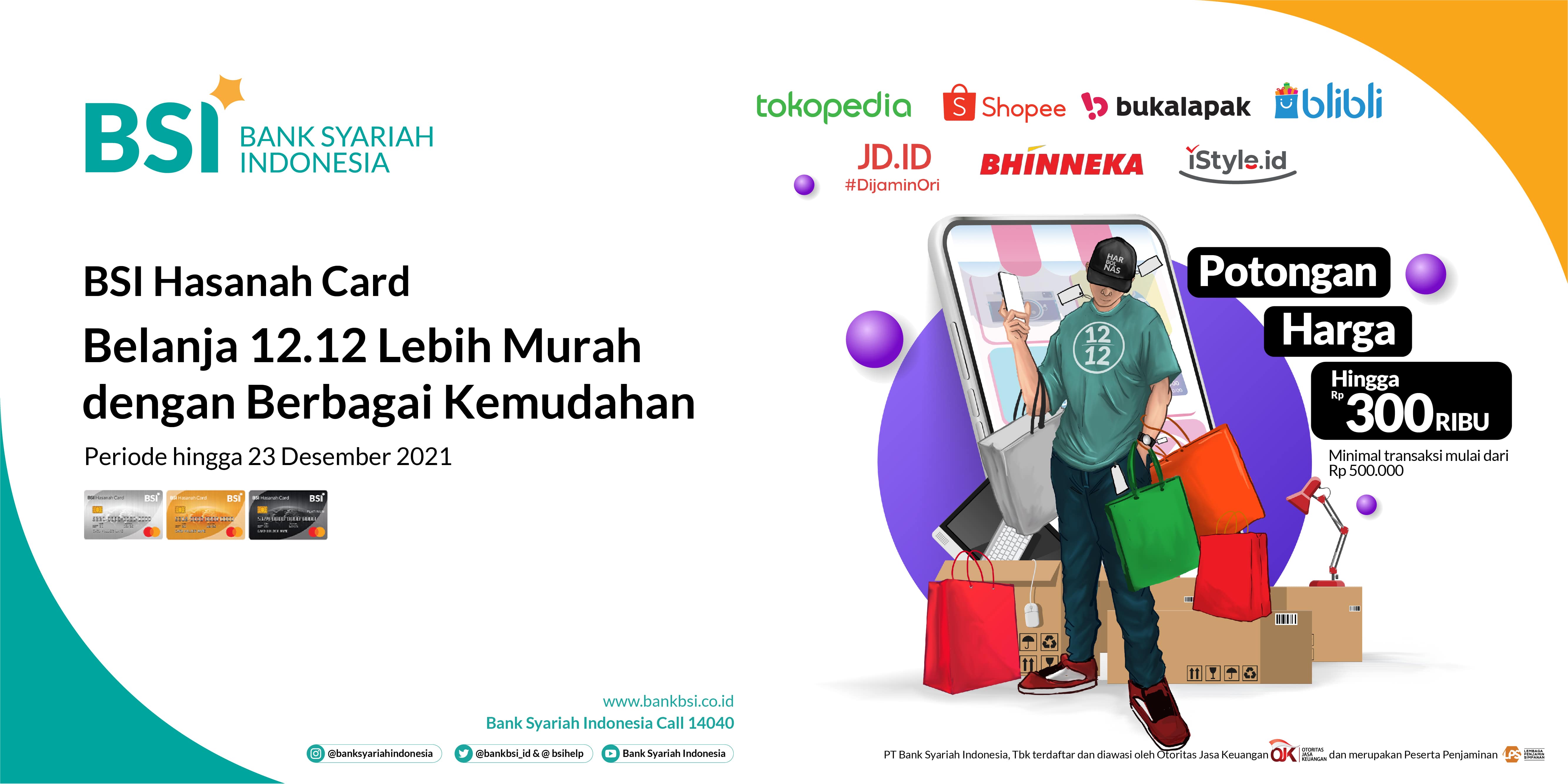 Shopee : Diskon hingga Rp 122.000,- transaksi mulai dari Rp 1.500.000,- menggunakan kode promo BSIBDAY (Teaser) & BSI1212 (Peak). Info shopee.co.id/bsi1212.